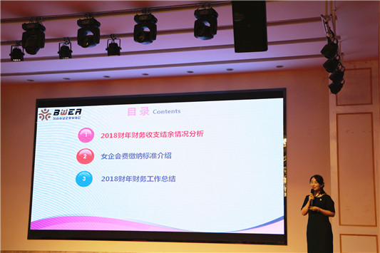 大会以奏响国歌向祖国献礼开始,随后播放了女企协宣传片,重温了女企协发展历程,会长李丽红向大会作2018年工作报告,副会长杨梅君向大会作2018年财务报告。