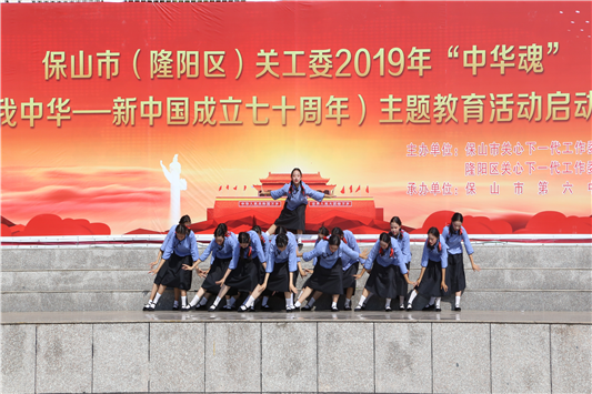 2019年是新中国成立70周年,保山市各级各部门在“六一”活动中广泛开展主题鲜明、内容丰富、形式多样、互动性强的宣传教育活动,营造了喜迎国庆、祝福祖国的浓厚氛围。保山市、隆阳区关工委在保山市第六中学举行2019年“中华魂”(爱我中华——新中国成立七十周年)主题教育活动启动仪式,捐赠“中华魂”读本1400册。昌宁县关爱学校和县幼儿园师生团1000余人到县综合文化展馆参观了昌宁县新中国成立70周年的历程、成就和宝贵经验。保山市电视台通过采访不同年龄段群众回忆童年最难忘的事情来展现时代变迁和新中国成立70年以来我市经济社会等方面发生的变化。其它各级各部门各学校纷纷组织“红领巾,心向党”、“庆六一,童心颂祖国”、“你好,新时代”、“争做新时代好队员”、“童心向党,快乐成长”等为主题的文体艺术活动,通过歌声、舞蹈、朗诵、小品等形式歌颂祖国、歌颂党,激发少年儿童的家国情怀、爱国热情、民族精神。