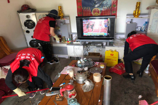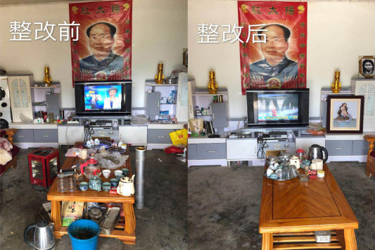 正值梅雨季节,湿哒哒的天气为出行增添不便,但滂沱大雨丝毫没有浇灭干部们的热情,大家手持扫把、火钳、抹布等工具,选取示范户进行样板打造,入户与主人一同收家治家,帮着群众干,做给群众看,最后争取实现群众自觉干。焕然一新的家居面貌与雨后的乡间道路一般,透露出乡村所特有的田园“气质”,树影婆娑,静谧清幽。