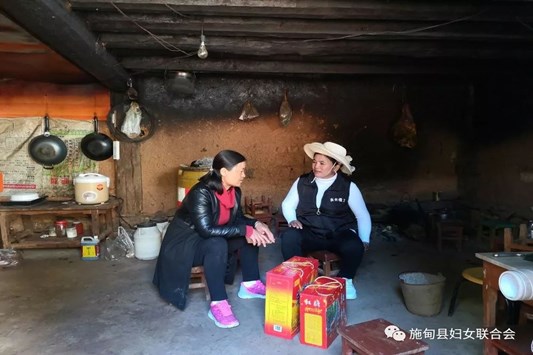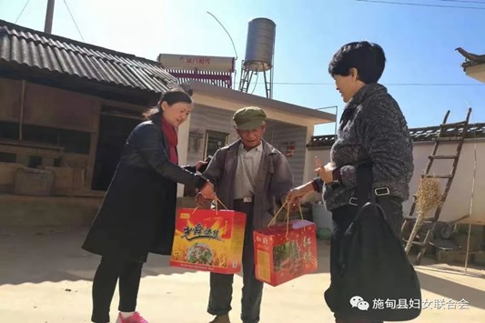 寒冬送暖,腊月传情。1月16日,县妇联副主席杨正会、科员杨育平,深入木老元村对门寨组开展了春节前走访慰问活动。看望慰问了17户贫困户,并为他们送去了饵丝、红糖等生活必需品和春节的祝福,县妇联表达了对帮扶贫困群众的关爱之情,希望她们能够过上一个祥和愉快的新春佳节。