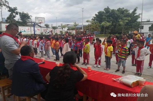 为进一步提高关爱儿童工作的针对性和实效性,将党的温暖和妇联组织的关爱送到儿童身边。2020年6月1日,施甸县妇联到挂钩村与中和小学一同举行“从小学先锋、长大做先锋”庆“六一”活动,为学生送去了1900多元的作业本、笔、羽毛球等礼物。