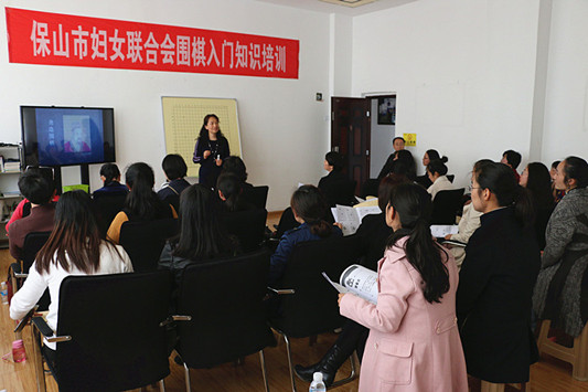 当天,中国中学生棋类协会常务理事、昆明市围棋协会会长、永子棋校·王智棋校保山分校校长王智及昆明市围棋协会副会长、永子棋校·王智棋校保山分校副校长张文瑾两位棋界大咖亲临授课。什么是围棋?围棋在中国文化中的地位是什么?围棋礼仪、观棋烂柯的典故……系列讲解引经据典,引入入胜。执子姿势、下棋规则指导更是浅显易懂,为学员们揭开了围棋在心中那层高不可攀的神秘面纱。面对老师提问,学员们举手抢答,认真记录,课堂气氛积极热烈。“请多多指教”,谦逊的的围棋开局礼仪后,两两对弈的实操便拉开序幕。学员们或低头冥思,或暗自谋篇布局,似要倾尽当日所学,赢得先机。“凝眸苦想究为何?黑白无由起巨波。”便是这紧张激烈气氛的最好诠释。谈及举办培训初衷,市妇联党组书记朱光亮说:“历史文化名城是保山建设现代化大城市的有机组成部分,保山文化,永子首屈一指。参与建设现代化大城市,妇女干部不能缺席,这就需要我们加强学习,认识保山文化、熟知保山文化、传播保山文化,积极推进保山系列历史文化进家庭,进而在全市营造弘扬国粹艺术,提升人文道德素养的氛围。”