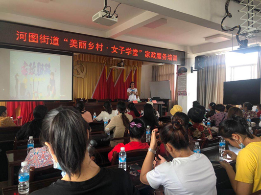 9月17日,河图街道邀请了暖心家政服务工作室的张发凤老师授课,将持家理家,靓化庭院纳入“美丽乡村·女子学堂”教学范围,组织50余名妇女姐妹走进学堂,张老师以理论加实操的方式为学员们讲解了清洗玻璃、物品收纳、擦洗地板等实用的家政服务知识,并以自身经历鼓励学员自立自强,提高对家政服务职业的认识,促进学员就业创业观念更新,激发创业就业热情,让姐妹们在轻松愉快的氛围中学到了新知识掌握了新技能。