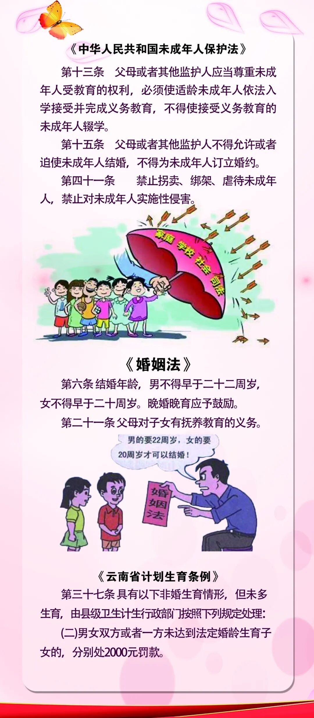 家庭是婚育行为的结果,婚育行为健康,家庭才能幸福。依法婚姻登记、依法生育是每个公民的权利,也是每个公民应当履行的义务。为普及婚育知识,保山市妇女儿童工作委员会办公室发起了婚育新风进万家宣传月活动。在婚育新风进万家宣传月之际,保山市妇儿工委办整理了部分婚育新风知识与大家分享,以转变群众的婚育观念,普及婚育知识,共同预防早婚早育。