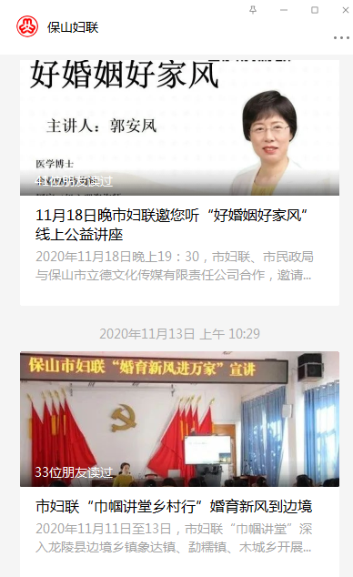 在保山电视台、保山广播电台、保山日报、保山新闻网、各单位网页、公众号、微博等媒体平台,开设婚育新风宣传专题栏,定期推送禁止早婚早育相关法律知识、婚育新风科普知识等。