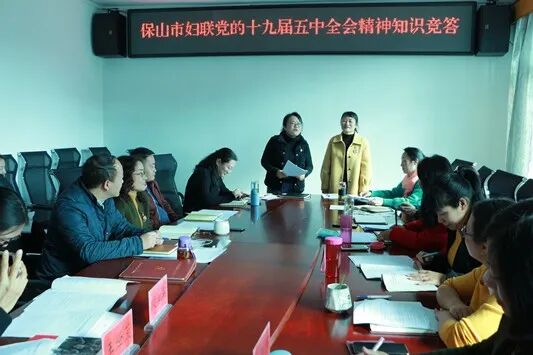会前,市妇联党支部组织全体党员干部以集中学习和个人自学的形式,系统学习了党的十九届五中全会精神和宪法知识;市妇联党支部书记朱光亮深入挂钩帮扶的复兴社区和祝马社区讲党课--宣讲党的十九届五中全会精神;支部委员从学习内容中选择部分内容进行竞答,进一步探讨交流学习心得,检验学习成果,让党的十九届五中全会精神和宪法知识在妇联干部中入心入脑,更好地为全市妇女儿童服务。